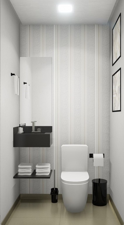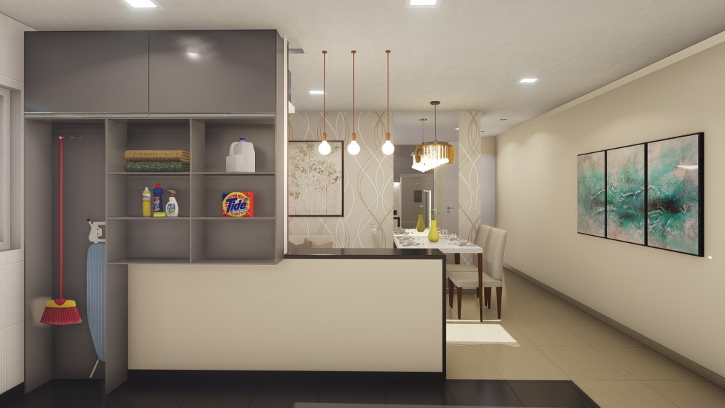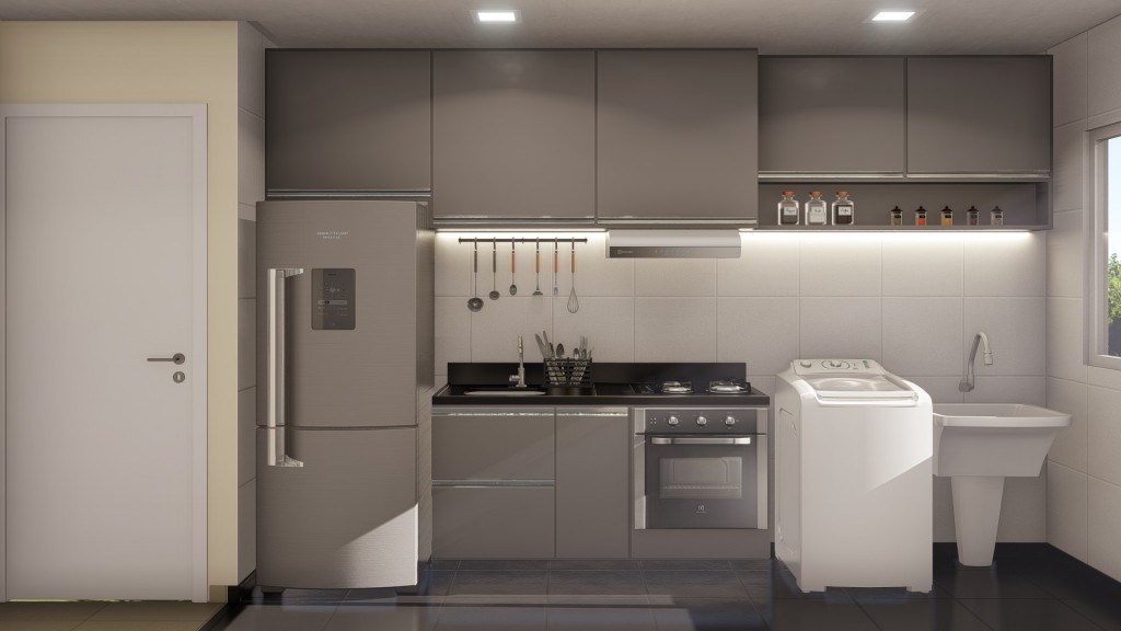 Paredes – Emassadas e Pintadas (áreas secas), revestimento cerâmico até o forro (áreas molhadas).